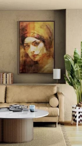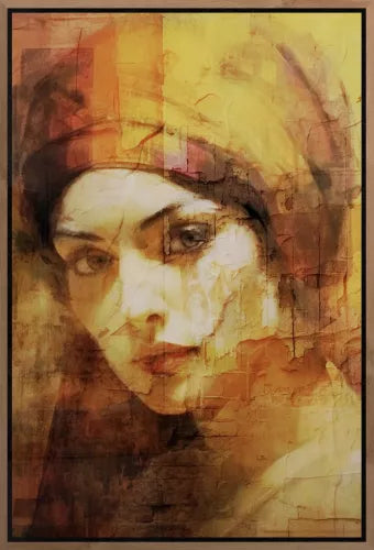 Joelle van Bas! is een prachtig portret dat klassieke schoonheid combineert met moderne technieken. De warme geel- en oranjetinten geven het een diepe, intieme sfeer, terwijl de fijne texturen en het spel van licht en schaduw het werk een mysterieuze uitstraling geven. Joelle trekt meteen de aandacht en voegt een verfijnde en unieke touch toe aan elke ruimte.