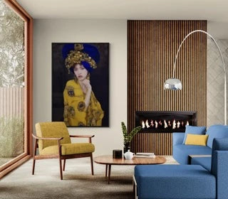 Gustava van Bas! combineert klassieke pracht met een moderne twist. Het portret straalt kracht en elegantie uit, met de rijke gele en koningsblauwe kleuren die direct de aandacht trekken. De gedetailleerde gouden accenten in de kleding en het indrukwekkende hoofddeksel geven het werk een koninklijke uitstraling, terwijl de zachte expressie van het model een vleugje mysterie toevoegt. Gustava is een kunstwerk dat perfect is voor wie op zoek is naar iets unieks en verfijnds.
