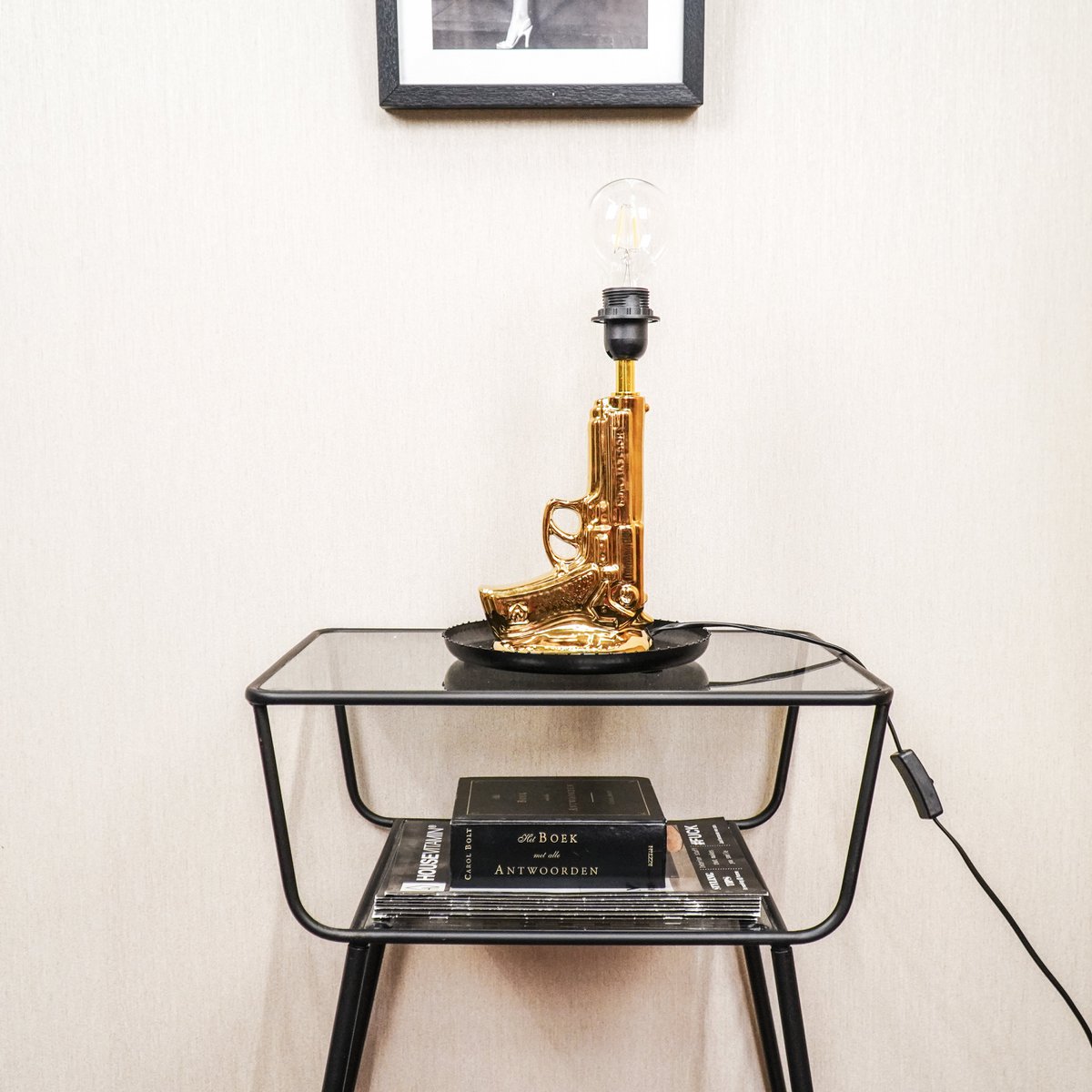 Stylingtip: Laat deze pistoollamp stralen door hem op een stapel boeken te plaatsen. Perfect voor op een bijzettafel, bureau of nachtkastje, en gegarandeerd een blikvanger in elke ruimte.