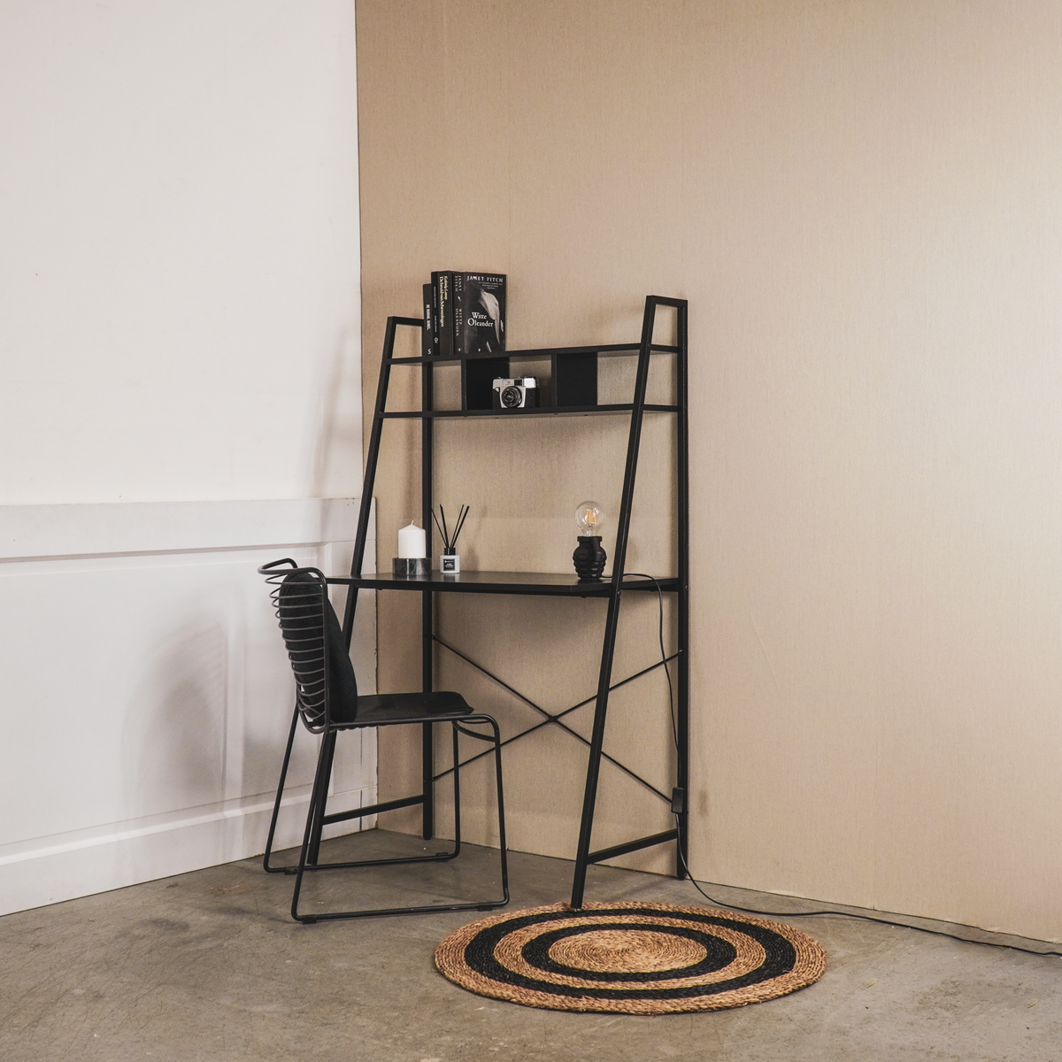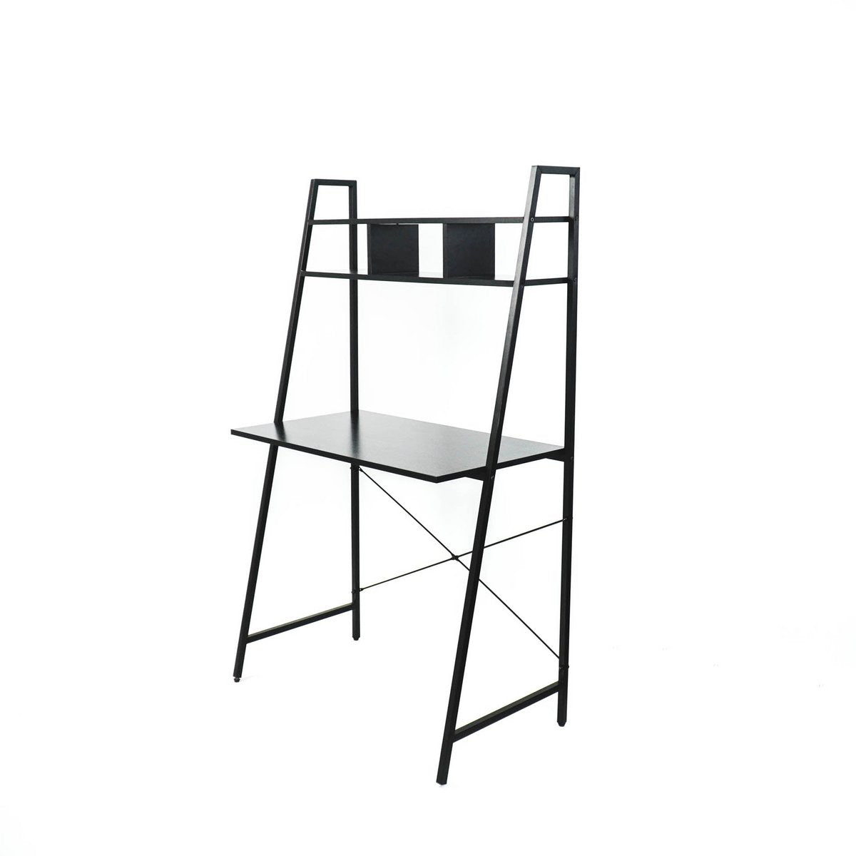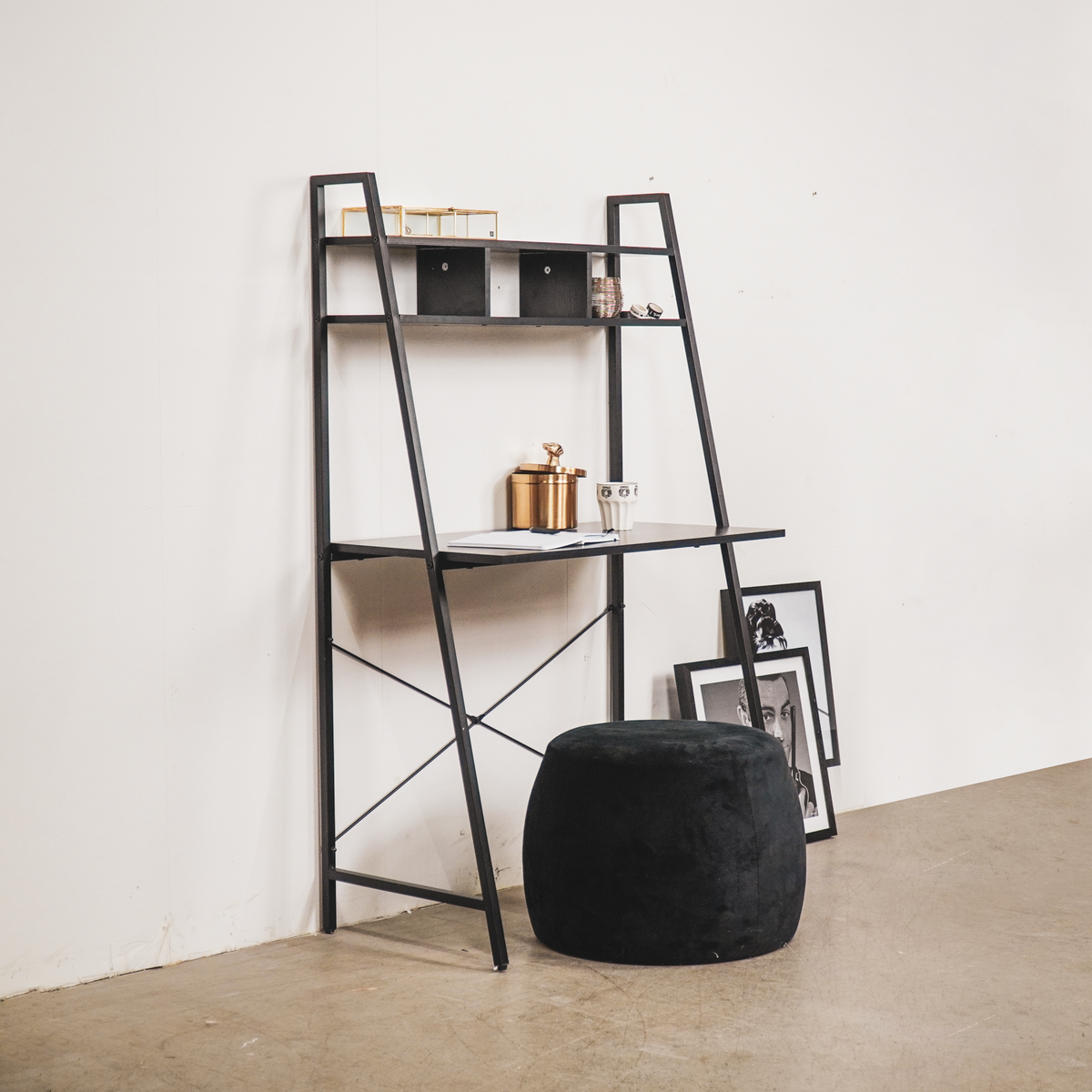 Werk en studeer in stijl met dit handige, kleine zwarte bureau met planken. Het is zowel stijlvol als praktisch, omdat je veel boeken en accessoires kunt opbergen in de handige planken van dit bureau. Dankzij de breedte van 145 cm past het gemakkelijk in elke ruimte. Work it baby!