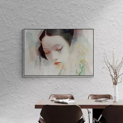 Japanese Dreams van Bas! is een poëtisch portret dat rust en verfijning uitstraalt. De zachte kleuren en delicate details geven het werk een dromerige uitstraling, terwijl de subtiele compositie een gevoel van introspectie en tijdloze elegantie oproept. Dit kunstwerk vangt de essentie van minimalisme en brengt een serene sfeer in elke ruimte.