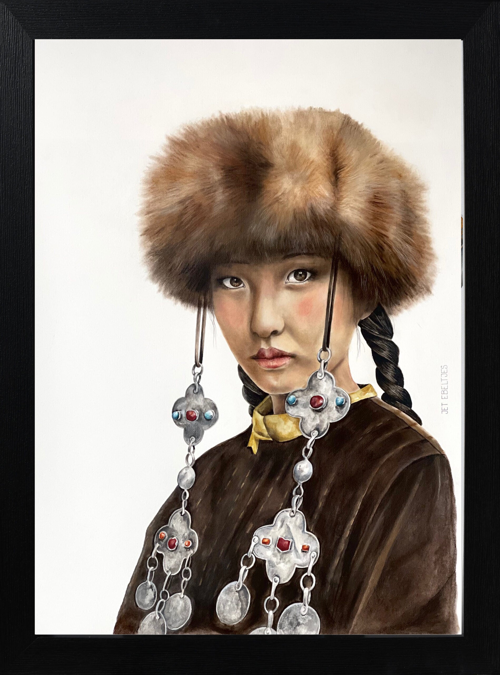 Een betoverend kunstwerk geïnspireerd door de betekenis van haar naam: "zo mooi als de maan". Aisulu, een jonge vrouw uit Kazachstan, straalt een mystieke schoonheid en tijdloze elegantie uit, vergelijkbaar met de zachte gloed van maanlicht.