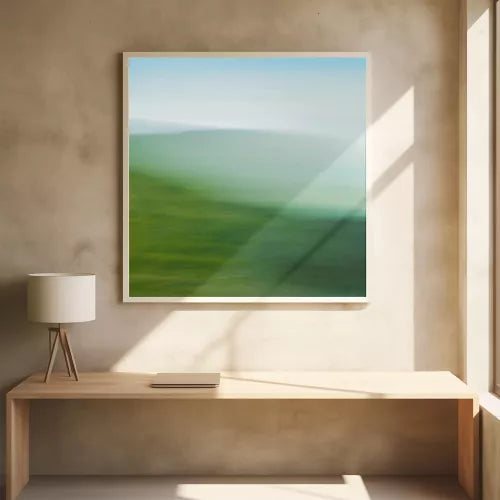 Mountains and Sea vangt de subtiele schoonheid van een landschap in zachte, vervagende tinten. De combinatie van groen en blauw straalt kalmte uit en roept een gevoel van eindeloze ruimte en natuurlijke balans op. Dit kunstwerk is perfect voor wie een vleugje eenvoud en rust aan zijn interieur wil toevoegen.