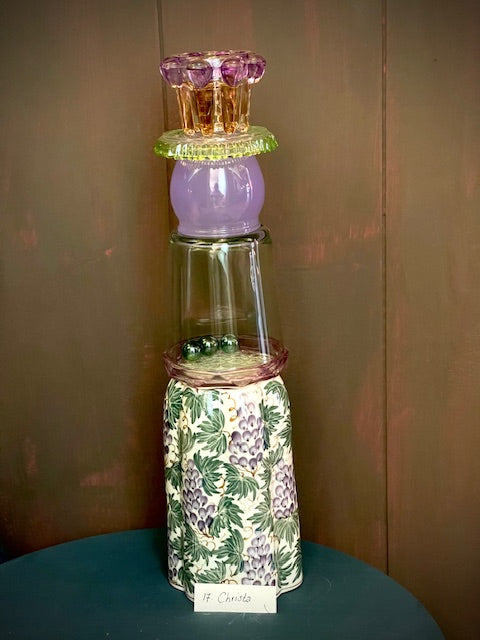 Dit unieke Vintique-item is een prachtig kunstobject dat perfect dienst kan doen als kandelaar. Gemaakt van zorgvuldig geselecteerd glas, verzameld door het enthousiaste team van Vintique, krijgt elke creatie een tweede leven als uniek designstuk. Dit glas wordt met vakmanschap en oog voor detail omgetoverd tot een functioneel en stijlvol item dat warmte en sfeer brengt in elk interieur.