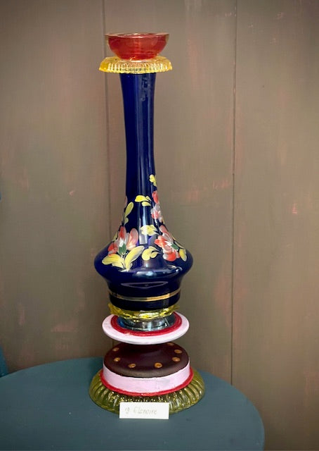 Dit unieke Vintique-item is een prachtig kunstobject dat perfect dienst kan doen als kandelaar. Gemaakt van zorgvuldig geselecteerd glas, verzameld door het enthousiaste team van Vintique, krijgt elke creatie een tweede leven als uniek designstuk. Dit glas wordt met vakmanschap en oog voor detail omgetoverd tot een functioneel en stijlvol item dat warmte en sfeer brengt in elk interieur.
