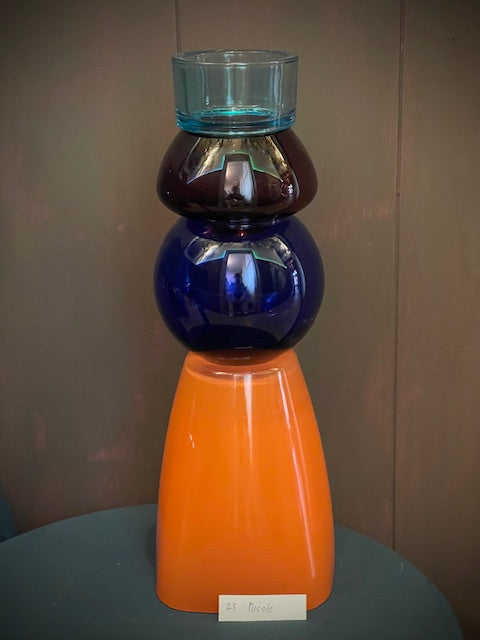 Dit unieke Vintique-item is een prachtig kunstobject dat perfect dienst kan doen als kandelaar. Gemaakt van zorgvuldig geselecteerd glas, verzameld door het enthousiaste team van Vintique, krijgt elke creatie een tweede leven als uniek designstuk. Dit glas wordt met vakmanschap en oog voor detail omgetoverd tot een functioneel en stijlvol item dat warmte en sfeer brengt in elk interieur.