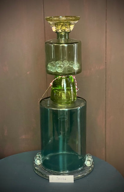 Dit unieke Vintique-item is een prachtig kunstobject dat perfect dienst kan doen als kandelaar. Gemaakt van zorgvuldig geselecteerd glas, verzameld door het enthousiaste team van Vintique, krijgt elke creatie een tweede leven als uniek designstuk. Dit glas wordt met vakmanschap en oog voor detail omgetoverd tot een functioneel en stijlvol item dat warmte en sfeer brengt in elk interieur.