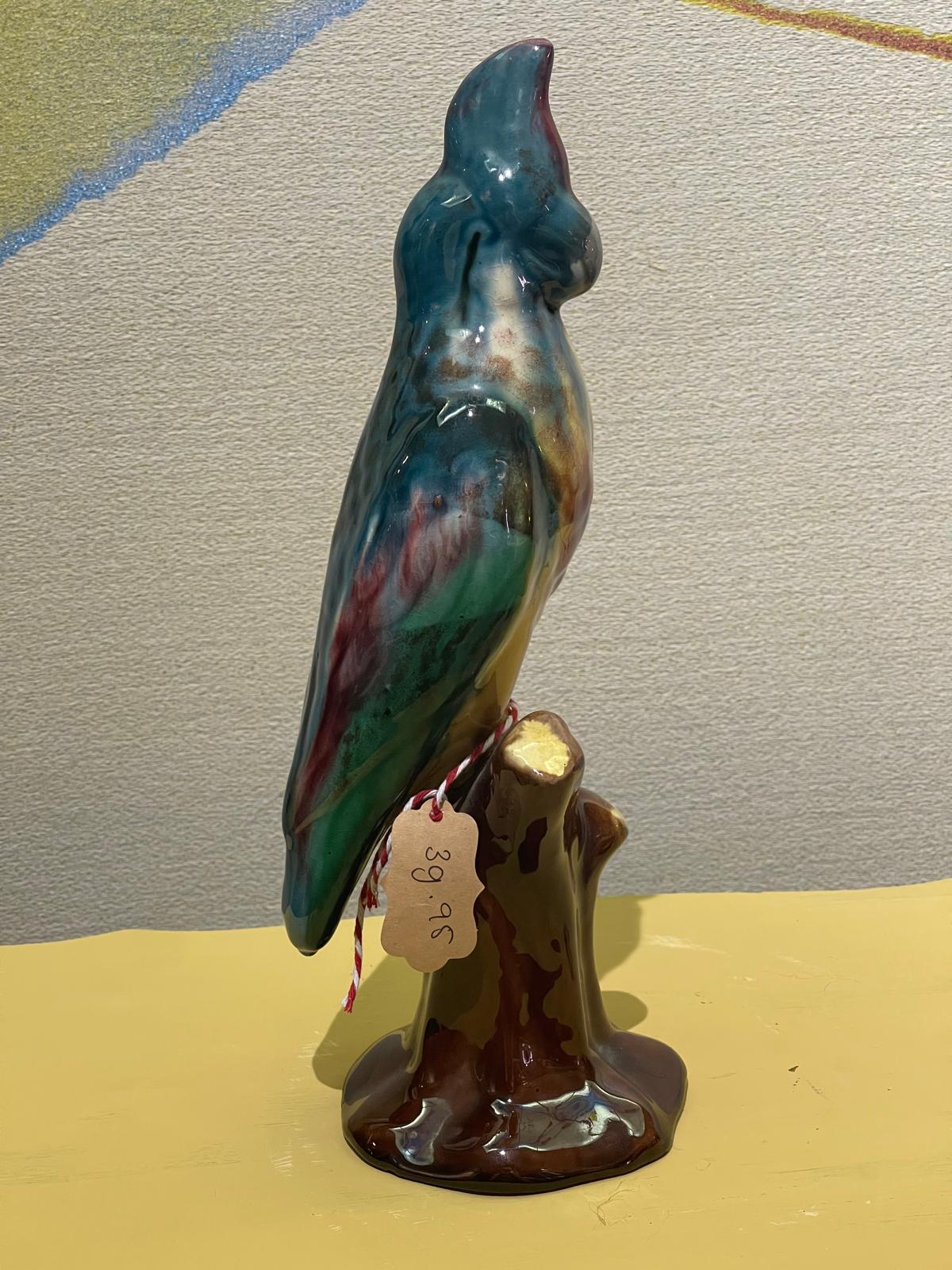 Maak kennis met Odiel, een prachtig vintage kunstwerk dat een tropische flair toevoegt aan elk interieur. Met zijn opvallende, met de hand afgewerkte kleuren en glazuur is Odiel een echte eyecatcher. Het beeld is 30 cm hoog en toont een elegante papegaai op een rustieke stam, perfect voor een stijlvolle en warme sfeer in je woonkamer of kantoor.