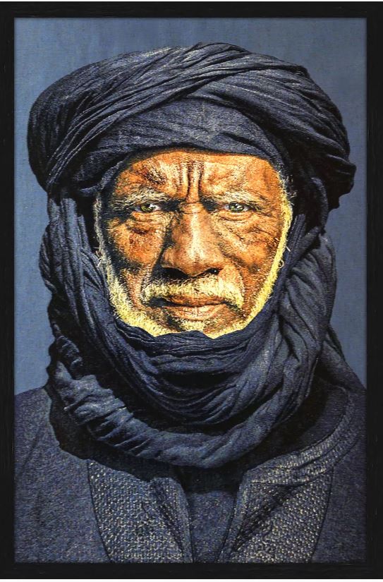 Tuareg Man Blue is een gobelin geweven textielkunstwerk gebaseerd op een krachtige foto van de Belgische fotograaf Serge Anton. Het portret toont een man uit de Toeareg-gemeenschap, bekend om hun rijke culturele erfgoed en traditionele indigo-blauwe kleding. De gobelin-techniek, uitgevoerd met hoogwaardige katoengaren, vertaalt de originele foto naar een fotorealistisch eindresultaat met extra diepte en textuur.