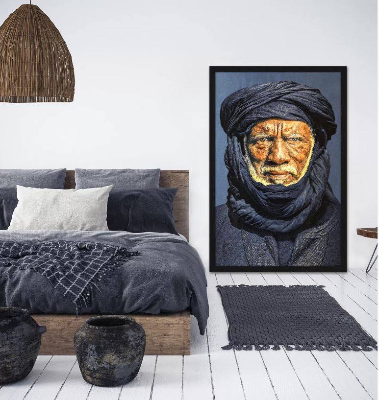 Tuareg Man Blue – Gobelin geweven textielkunstwerk van Serge Anton | Vintique Interiors